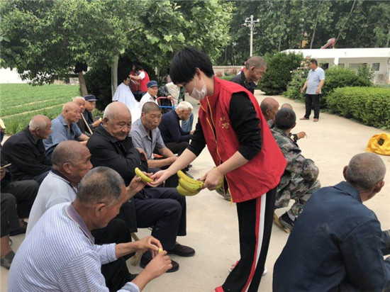 當天上午,周口助夢公益團20余名志愿者來到西華縣大王莊鄉(xiāng)中心敬老院,為37名老人帶來了自發(fā)捐款購買的鞋子、毛巾、襪子、香皂、臉盆、香蕉、西瓜等價值近2000元的愛心物資。
