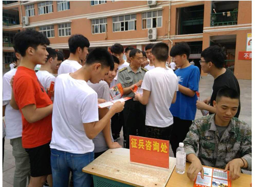 5月25日,淮陽縣征兵政策宣講團(tuán)進(jìn)校入班,對全縣六所高中學(xué)校開展宣講活動。效果明顯,當(dāng)場有參軍意向高學(xué)歷青年報名,人數(shù)成倍增長,周口軍分區(qū)副司令員薛振喜看到這一喜人的成果后說:“大學(xué)生征兵政策宣傳進(jìn)村入戶進(jìn)校園入班級這個做法好。”