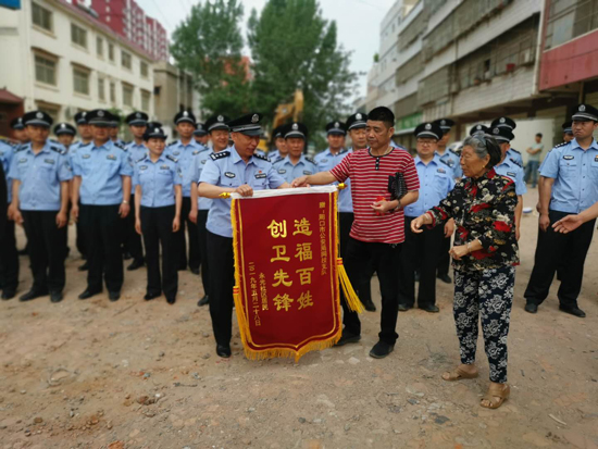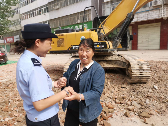 “創(chuàng)衛(wèi)不留死角,想盡辦法也要給市民良好的出行體驗?!笔泄簿终匍_黨委會議專題研究建新路西段附近居民出行問題,發(fā)出“克服困難、自掏腰包、推倒違建、平整道路”的指令,號召全警幫助居民實現(xiàn)安全出行?!斑@些民警、社區(qū)干部都跟我的孩子差不多大,看著他們頂著大太陽清理雜物,夜里還在加班加點工作,我給他們說‘孩子來家喝口水,吃個飯’他們都笑著拒絕了。真感謝他們,也心疼他們?!闭f起“創(chuàng)衛(wèi)”以來,市公安局民警和社區(qū)干部的工作,70多歲的智老太眼含熱淚。
