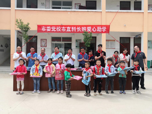 5月29日上午,2019年度市委黨校春季市直科長班20多名學員代表,在該校副校長高鵬帶領下,來到西華縣大王莊鄉(xiāng)東孫莊小學開展愛心助學活動,為48名小學生送去圖書、書包、文具盒等“六一”禮包。