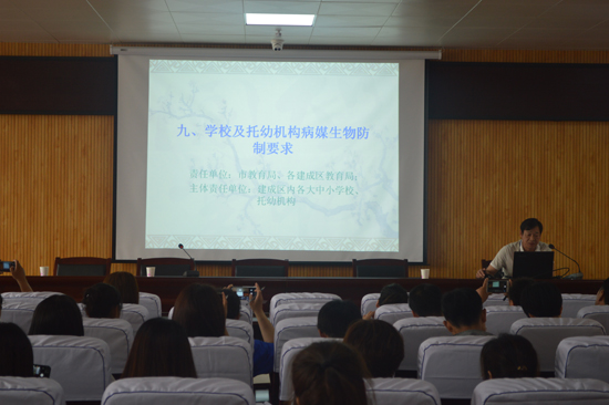 此次培訓(xùn)會上,市創(chuàng)衛(wèi)辦督導(dǎo)組組長李弘從學(xué)校及托幼機構(gòu)病媒生物防治要求等方面進行宣講。鄧?yán)蚪M長從學(xué)校健康教育與促進等方面進行了專題培訓(xùn)。徐銳組長對入托入學(xué)兒童預(yù)防接種工作等相關(guān)工作進行了詳細(xì)講解。通過深入淺出的講解和生動的案例說明,詳細(xì)解讀了創(chuàng)建國家衛(wèi)生城市中病媒生物防制的達標(biāo)要求。