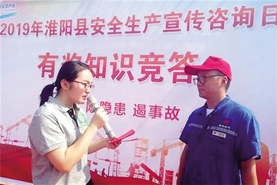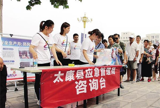6月14日,淮陽(yáng)、鹿邑、西華等地相繼舉辦安全生產(chǎn)宣傳咨詢?nèi)铡⒐婇_(kāi)放日活動(dòng)。緊接著,6月17、18日,太康、鄲城、項(xiàng)城、沈丘相繼舉辦安全生產(chǎn)宣傳咨詢?nèi)蘸蛻?yīng)急救援演練等一系列形式多樣、豐富多彩的活動(dòng),全市各地聯(lián)動(dòng)掀起了“安全生產(chǎn)月”活動(dòng)高潮。