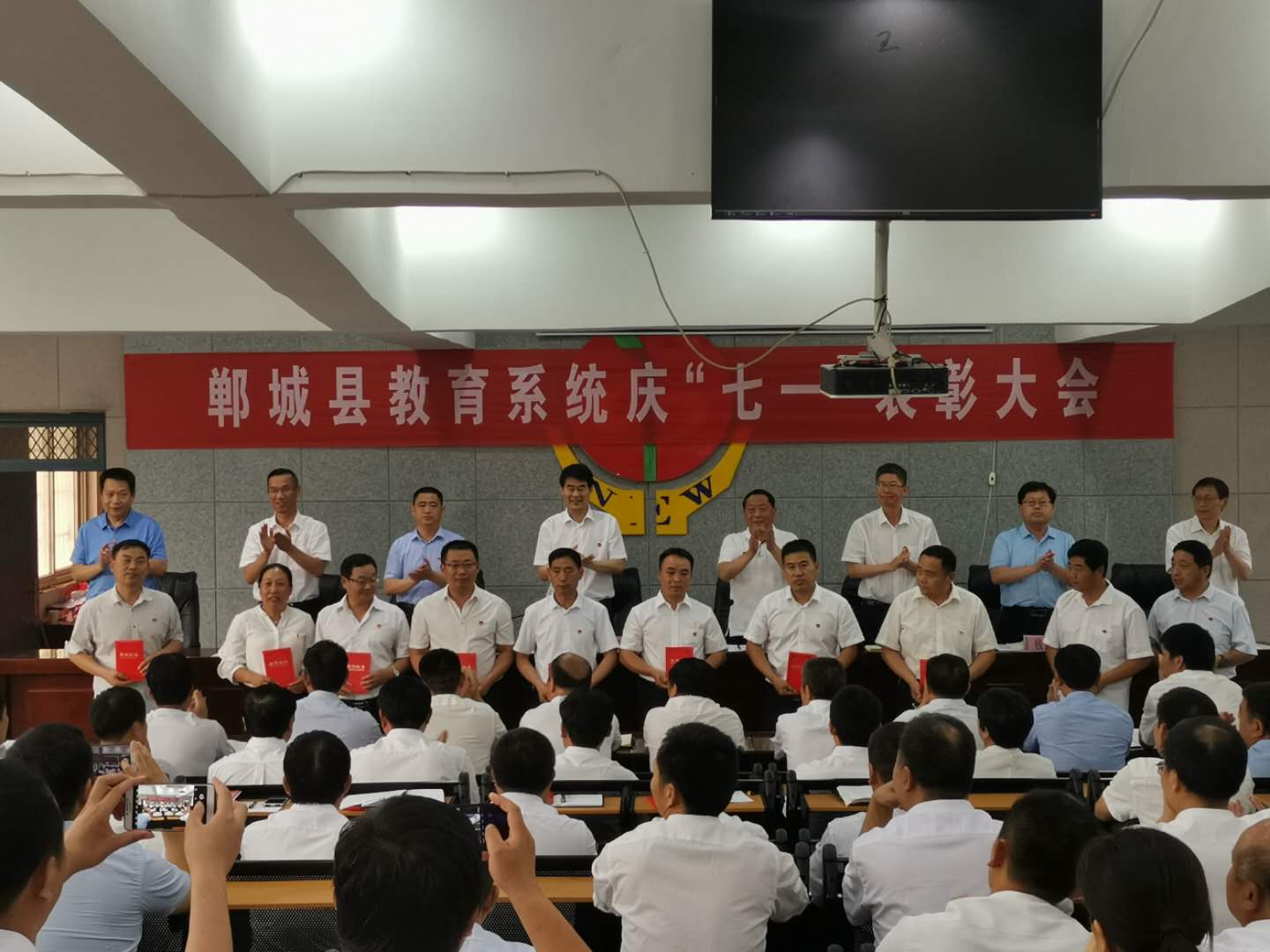 6月26日下午,鄲城縣教育系統(tǒng)慶“七一”表彰大會(huì)召開??h教體局黨組書記、局機(jī)關(guān)黨委書記、局長劉現(xiàn)營出席會(huì)議并講話。局黨組成員、副局長張祥增主持會(huì)議。