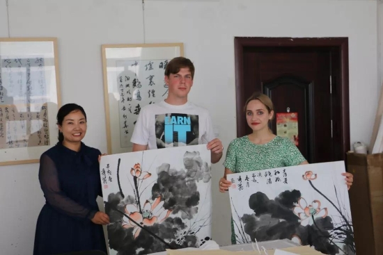 鹿邑本土畫家劉龍飛畫的花鳥栩栩如生引起俄羅斯青年畫家們的嘖嘖稱嘆。兩位青年畫家通過翻譯告訴記者,中國畫歷史悠久、博大精深,看到兩位老師的畫作形神兼?zhèn)洌瑲忭嵣鷦?dòng),真是不虛此行,感謝贈(zèng)送的佳作,他們一定珍藏。據(jù)悉,本次活動(dòng)他們將以國際藝術(shù)志愿者的身份、以西方人的視角描繪老子故里的美景,他們走進(jìn)明道宮、太清宮等景點(diǎn)實(shí)地寫生,并走美術(shù)學(xué)校為孩子們輔導(dǎo)繪畫并帶來世界名校的繪畫理念。