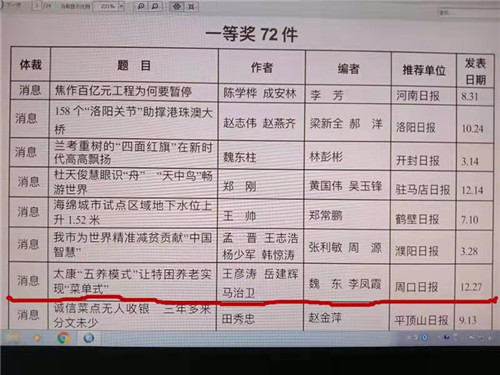 據(jù)介紹,本屆河南新聞獎獲獎作品具有“把握時代脈搏 謳歌時代精神”“反映重大主題 積極服務(wù)大局”“講述中國故事 彰顯主流價值”等特點(diǎn),主題深刻、事實(shí)準(zhǔn)確、文風(fēng)生動、表現(xiàn)新穎,充分反映我省新聞戰(zhàn)線積極宣傳報道黨的十八大以來我省發(fā)展的歷史成就、歷史變革,報道我省各行各業(yè)改革開放的豐碩成果和感人事跡,特別是聚焦打贏精準(zhǔn)扶貧攻堅(jiān)戰(zhàn),形成宣傳的強(qiáng)大聲勢。作品堅(jiān)持正確的輿論導(dǎo)向、唱響主旋律、大力宣傳社會主義核心價值觀,為新時代中原更加出彩提供強(qiáng)有力的輿論支撐和良好的輿論氛圍。《太康“五養(yǎng)模式”讓特困養(yǎng)老實(shí)現(xiàn)“菜單式”》具有“重大題材”“重大影響”“重大意義”等特點(diǎn),經(jīng)過專家層層評審,最終在眾多參評作品中脫穎而出,一舉奪得了河南新聞獎一等獎。