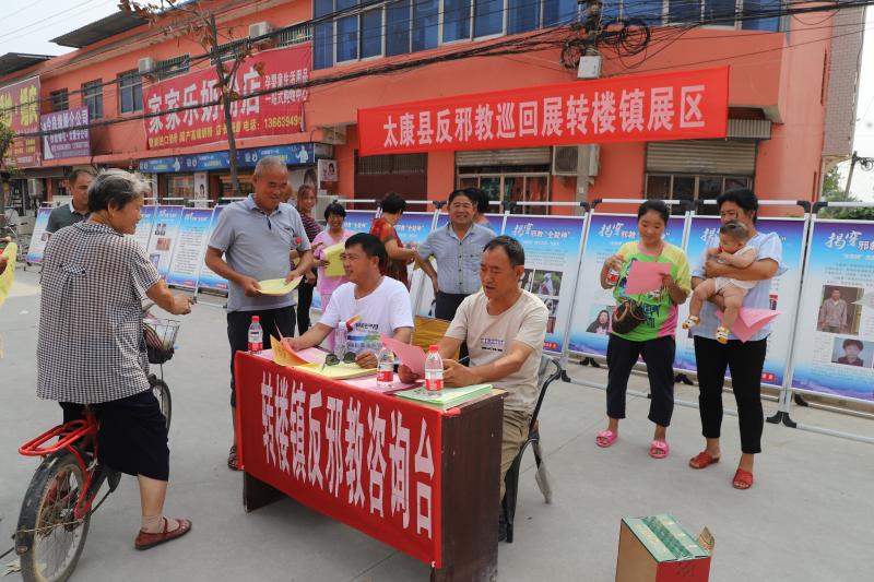 7月16日,太康縣反邪教巡回展在轉(zhuǎn)樓鎮(zhèn)開展反邪教宣傳活動。當日,轉(zhuǎn)樓鎮(zhèn)政府組織鎮(zhèn)綜治中心、派出所、司法所、中心校等單位,在轉(zhuǎn)樓大街布置展板、咨詢臺,接受群眾咨詢1000余人次,發(fā)放宣傳頁1000多份。 記者 馬治衛(wèi) 通訊員 徐偉 攝