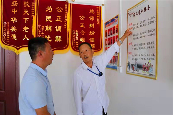 老人說(shuō),他是2018年初加入“幸福調(diào)解室”的,“當(dāng)時(shí),我剛從外地回來(lái),路過(guò)楊廟看到有人臨街房前懸掛調(diào)解室招牌,就報(bào)名加入了調(diào)解室隊(duì)伍?!?/p>