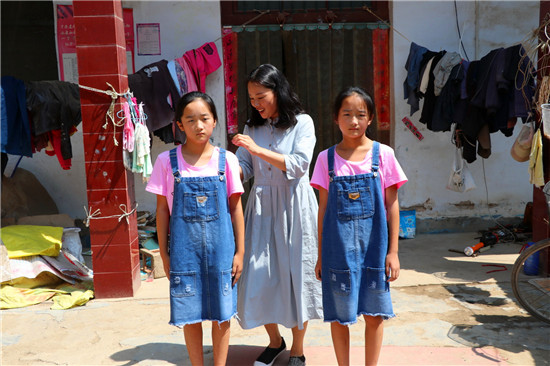這次來看望“女兒”,王冬特意給小姐妹倆購買了幾件新衣服、鞋和一些書籍。穿上新衣服和鞋子,姊妹倆高興得手舞足蹈?!巴趵蠋煟愦齻兘o親閨女一樣,每次來都不忘給她們買東西。我們真不知道向你說啥好了。”看著倆孫女被王冬打扮的如此美麗好看,王肖晴的爺爺王客臣感動(dòng)得連連向王冬道謝。