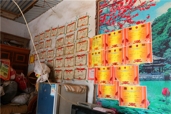 7月28日星期天,是王冬去看兩名"女兒"的時(shí)間。小姐妹家的院子不大,但被收拾得干干凈凈。屋內(nèi)擺放著一臺21英寸舊電視和一臺冰箱,但都是13年以前購買的。屋子北墻上貼滿了獎(jiǎng)狀,十分惹眼,“倆孩子都爭氣,每次都拿獎(jiǎng),這些獎(jiǎng)狀都是著她們學(xué)習(xí)掙來的?!蓖踝忧绲哪棠逃檬种钢鴫ι系莫?jiǎng)狀自豪地說。