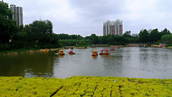 8月11日,天氣涼爽,周口人民公園落花湖里游船穿梭。如今的周口人民公園干凈整潔,水清岸綠,極像一幅美麗的圖畫,市民陶醉其中,流連忘返。