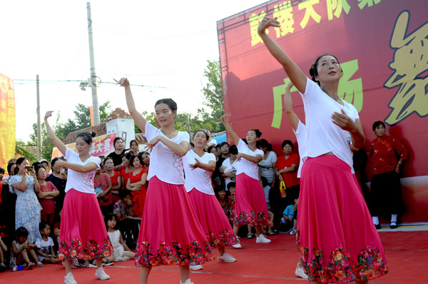為了把節(jié)目辦的出彩,村民們非常認真,不僅動員老少婦女們參與排練,晚上吃過飯在村邊一遍遍的練,直到能熟練上場,另外,他們還請來劇團的演員當(dāng)評委,每場精彩的演出,博得大伙叫好聲。評委也被邀上臺 ,臨場助興,多才多藝的村民也見縫插針地表演一番才藝,一場村頭廣場舞大賽有聲有色,笑聲連連,展示了農(nóng)民在奔小康道路上的自信、幸福和執(zhí)著。