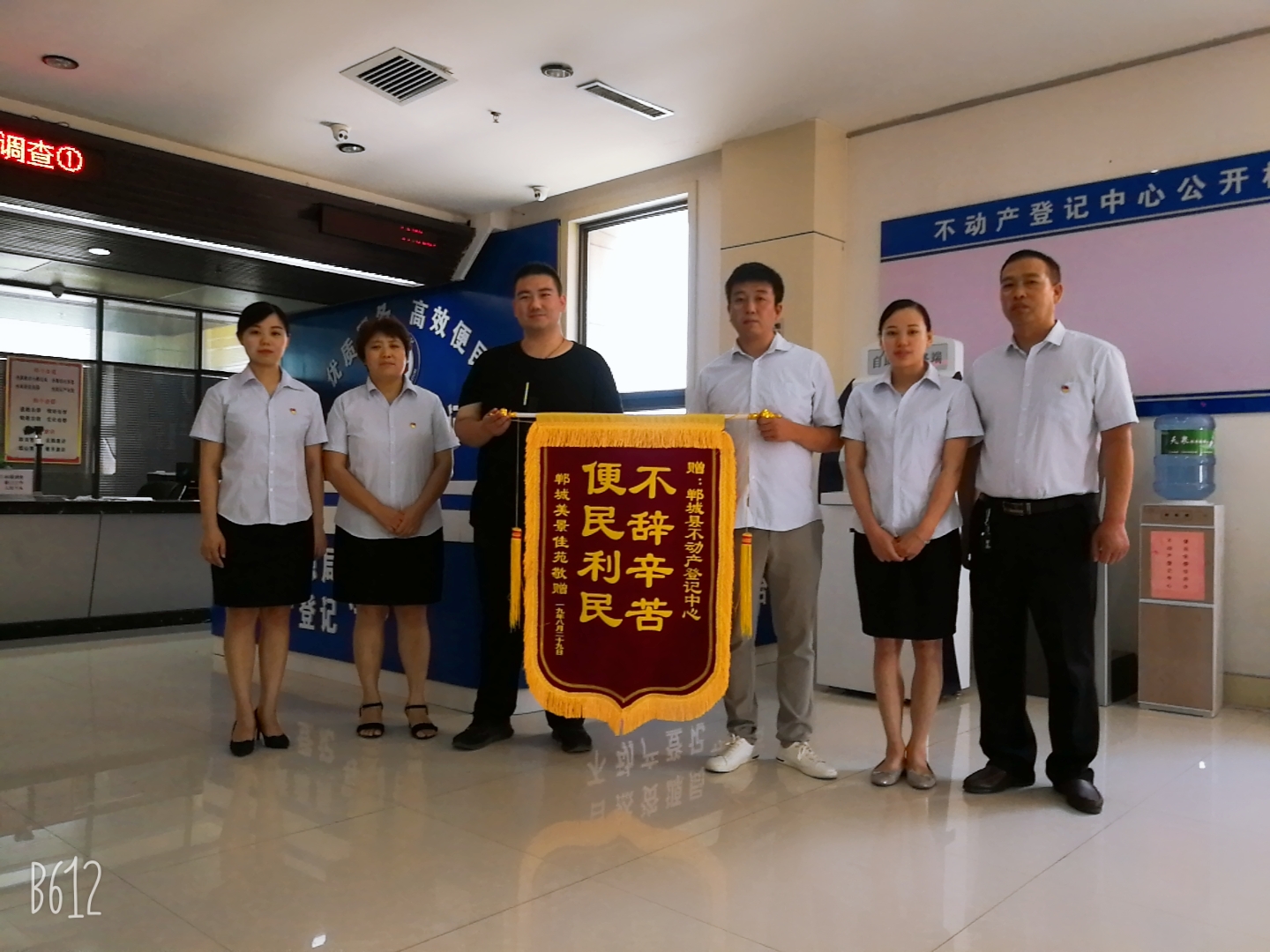 近日,河南博騏置業(yè)有限公司工作人員來到鄲城縣不動產(chǎn)登記中心,將一面印有“不辭辛苦,便民利民”的錦旗送到了中心負責人手中,對不動產(chǎn)登記中心真心為民的服務(wù)態(tài)度和高效的辦事效率表示感謝,點贊窗口“熱情、文明、高效”的服務(wù)。
