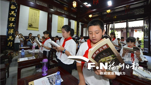 19日上午,由福州日?qǐng)?bào)和福州市教育局聯(lián)合舉辦的“探訪總書記牽掛的福州古厝”夏令營(yíng)活動(dòng)在鰲峰書院?jiǎn)?dòng)。