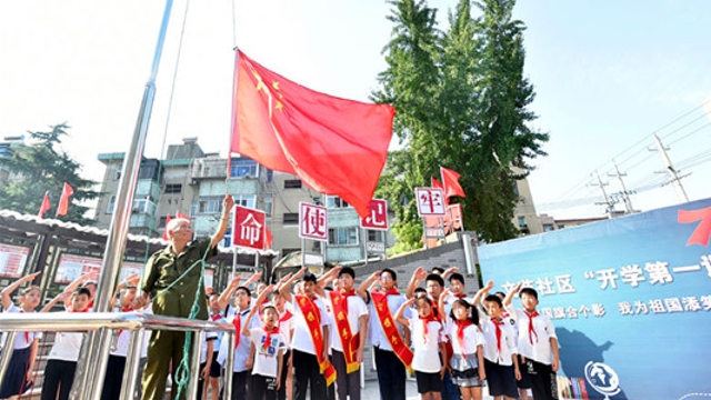 9月4日,“我和我的祖國(guó)”天津市青少年慶祝中華人民共和國(guó)成立70周年示范活動(dòng)暨“我與祖國(guó)共奮進(jìn)──國(guó)旗下的演講”主題隊(duì)日活動(dòng)在和平區(qū)萬全小學(xué)舉行。