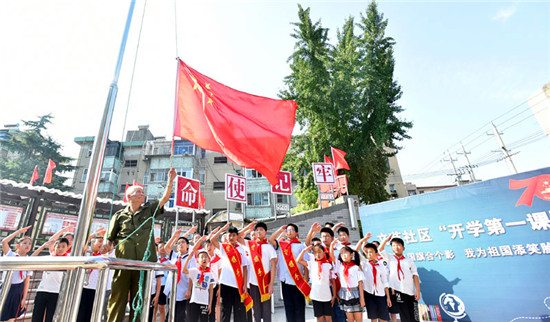 “重大節(jié)日前后,這里都舉行隆重的升旗儀式,這個傳統(tǒng)已堅持了十年?!蔽脑飞鐓^(qū)黨委書記梅愛軍說,多年來,文苑社區(qū)將國旗臺廣場打造成愛國主義教育基地,此次開展開學第一課“我與國旗合個影、我為祖國添笑臉”活動,目的是給孩子們上一堂形象生動的愛國主義教育課,引導孩子和居民把愛國之情化作學習工作的動力。(來源:揚州日報 記者 趙磊)