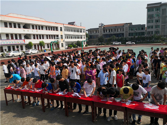 集中簽名現(xiàn)場后,還圍繞鄂州市創(chuàng)建辦“四個一”的活動要求,各班還給學生布置了一份特別暑期作業(yè)和一次參觀學習活動。具體要求學生和自己的父母,在暑期參與文明交通勸導、社區(qū)清潔等志愿服務活動,到鄂州市博物館、鄂州市科技館、鄂州市圖書館、賀龍軍部等地參觀學習。通過自己和父母的實際行動,向市民傳遞文明正能量,帶動更多的人參與到文明城市的創(chuàng)建中來。