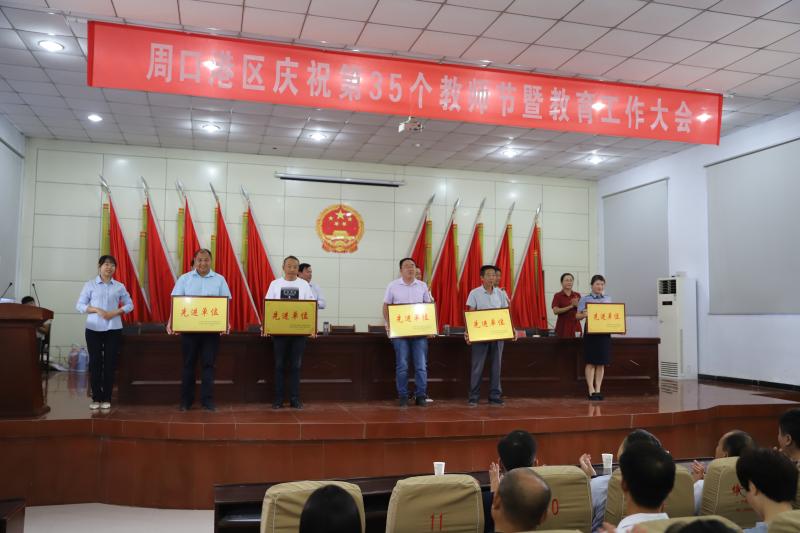 大會首先對2018-2019學年港區(qū)教育工作進行回顧總結(jié),并對新學年的工作進行安排部署。隨后宣布《中共周口港口物流產(chǎn)業(yè)集聚區(qū)委員會、周口港區(qū)物流產(chǎn)業(yè)集聚區(qū)管理委員會<關(guān)于表彰2019年港區(qū)教育系統(tǒng)優(yōu)秀校長、優(yōu)秀教師、先進工作者、先進單位>的決定》,區(qū)領(lǐng)導為先進單位和個人頒獎。