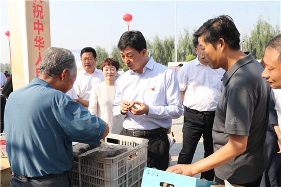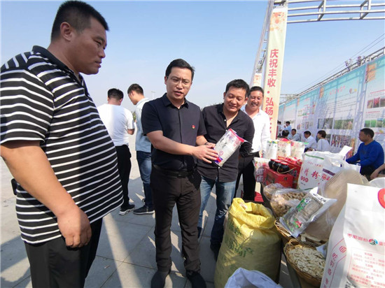 一問一答間,爽朗的笑聲響徹節(jié)日上空,農(nóng)民們喜笑顏開,傳遞出濃濃的幸福。大棗、黑木耳、小麥粉、粉條等西華縣各具特色的農(nóng)產(chǎn)品紛紛亮相,除了展示各自的“增收實(shí)力”,也展示出幾年來(lái)發(fā)展農(nóng)業(yè)特色經(jīng)濟(jì)的豐碩成果?!罢钆_(tái),農(nóng)民唱戲,每年一度的農(nóng)民豐收節(jié)既是農(nóng)民歡樂的節(jié)日,也是展銷農(nóng)產(chǎn)品的紐帶平臺(tái),今天我們奉母鎮(zhèn)展示了本地原生態(tài)粉條和純糧美酒,希望借助豐收節(jié)機(jī)遇,拓寬銷路實(shí)現(xiàn)農(nóng)民增收?!蔽魅A縣奉母鎮(zhèn)黨委書記陳鵬告訴記者。