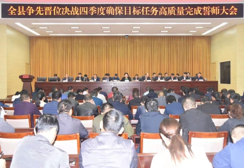 乘著周口市2019年第三季度項(xiàng)目觀摩的東風(fēng),扶溝吹響了決戰(zhàn)第四季度、奮力推動經(jīng)濟(jì)社會高質(zhì)量發(fā)展的“沖鋒號”。10月21日,扶溝縣召開爭先晉位決戰(zhàn)四季度確保全縣目標(biāo)任務(wù)高質(zhì)量完成誓師大會,深入貫徹習(xí)近平總書記在河南考察調(diào)研指示精神,動員全縣上下進(jìn)一步認(rèn)清形勢,堅(jiān)定信心,鼓足干勁,加大力度,大干苦干,決戰(zhàn)決勝,全力以赴做好第四季度工作,確保全年目標(biāo)任務(wù)高質(zhì)量完成。張穎波、詹凱、姜永來、張建中等縣四個(gè)班子領(lǐng)導(dǎo)出席會議??h委副書記、政法委書記詹凱主持會議。