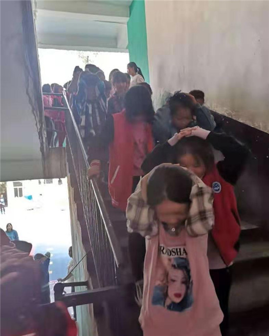 當(dāng)日9時(shí)許,一陣急促的警報(bào)聲在該校園內(nèi)響起,防震防踩踏緊急疏散安全演練活動(dòng)正式拉開帷幕。各小組成員按照演練方案要求迅速到達(dá)各自負(fù)責(zé)的指定位置,同學(xué)們?cè)诎嘀魅卫蠋煹囊龑?dǎo)下,雙手抱頭或用書包、書本護(hù)住頭部,迅速并安全有序地向操場(chǎng)撤離,班主任集結(jié)隊(duì)伍,清點(diǎn)人數(shù)并向演練指揮組報(bào)告撤離情況。整個(gè)演練過程反應(yīng)迅速、協(xié)調(diào)統(tǒng)一,共計(jì)用時(shí)6分20秒。