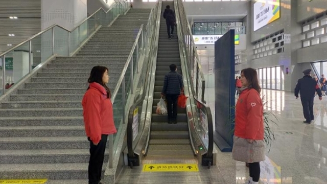 12月1日早上6:30,當(dāng)大多數(shù)人還沉浸在夢鄉(xiāng)里,志愿者柯曉艷和同學(xué)已經(jīng)站在周口東站的售票廳,為即將乘坐高鐵出行的乘客做指引。