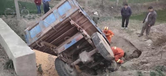 11月24日16時54分許,鄲城縣消防大隊指揮中心接到報警,稱位于省道S329潘莊指示牌附近,一輛農(nóng)用三輪車側翻,1人被困,請求救援。