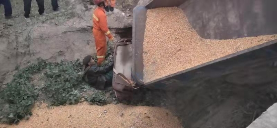 接警后,鄲城消防大隊立即出動3輛消防車15名指戰(zhàn)員前往處置。經(jīng)偵查發(fā)現(xiàn),側翻車輛是一輛農(nóng)用三輪車,車上拉有約2噸散裝玉米?,F(xiàn)場玉米灑落一地,駕駛員約六十歲,左腿被農(nóng)用三輪車前輪壓住,無法脫身,加之即將天黑,當時天氣較冷,如不及時處置,后果不堪設想。