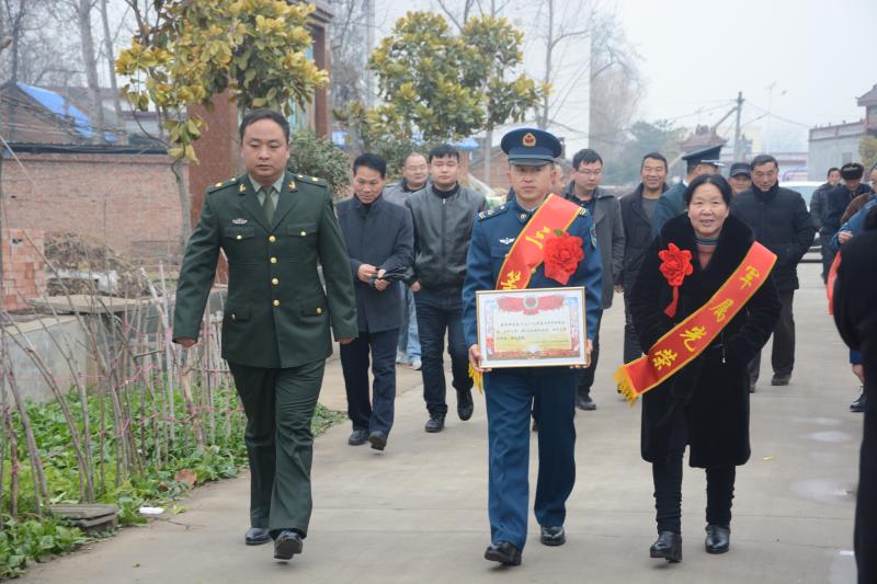 12月下旬,黃繼光生前所在部隊(duì)與沈丘縣人武部、沈丘縣退役軍人事務(wù)局共同商榷,為了使軍人的榮譽(yù)向官兵家庭拓展、向全社會(huì)輻射,在新年前開(kāi)展一次功章勵(lì)我強(qiáng)軍志、立功喜報(bào)送到家活動(dòng),選派專(zhuān)人成立報(bào)喜小分隊(duì),為立功授獎(jiǎng)的官兵家庭送去立功喜報(bào)和慰問(wèn)金。