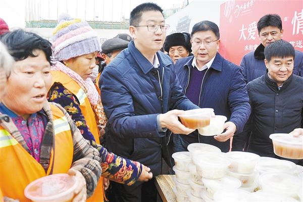 1月2日上午,商水縣在城區(qū)6處人流集中的地方設立免費送粥點,1000多碗臘八粥香飄四處,溫暖全城。圖為臘八粥發(fā)放現(xiàn)場。記者 付永奇 攝