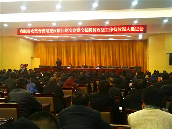 會上,趙紅亮傳達(dá)了《省脫貧攻堅第九督查巡查組對我縣調(diào)研指導(dǎo)反饋問題清單》。段然對近期全縣脫貧攻堅工作進(jìn)行具體安排部署。