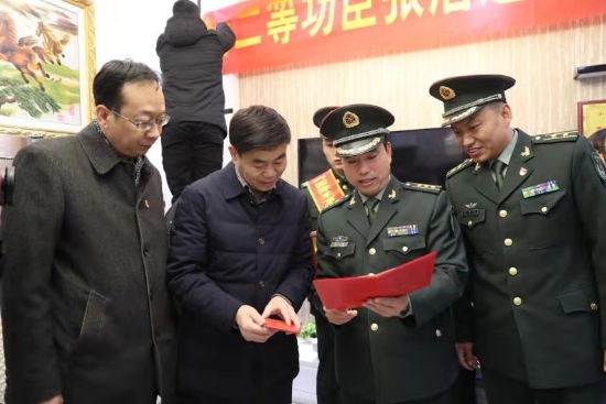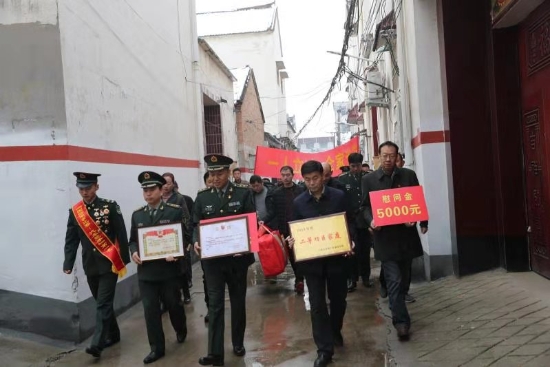 隨后,周口軍分區(qū)政治部主任李揚(yáng),太康縣委副書(shū)記、政法委書(shū)記劉海艇,縣委常委、副縣長(zhǎng)韓維俊,縣委常委、人武部部長(zhǎng)于永前,人武部政委郭立君等領(lǐng)導(dǎo)給張潔的母親盧靈芝送去了立功喜報(bào)、二等功臣家庭牌匾和慰問(wèn)品、慰問(wèn)金。