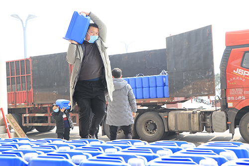 該公司總經(jīng)理馬媛媛介紹,她老家是周口的,在鄭州開辦的公司,公司業(yè)務(wù)主要是搞醫(yī)療物質(zhì)配送?!爱?dāng)前嚴(yán)峻的疫情形勢(shì)真得讓人很擔(dān)心,為了能夠給家鄉(xiāng)提供一些力所能及的幫助,公司特意購(gòu)置了這批醫(yī)用物質(zhì)以解家鄉(xiāng)防控疫情的燃眉之急?!瘪R媛媛介紹,為了能在市場(chǎng)上購(gòu)到這批貨物,公司從除夕晚上就開始聯(lián)系貨物,打了近百個(gè)電話,直到大年初四才在山東的一家公司聯(lián)系到貨源,排了6天隊(duì)之后,才購(gòu)到10000斤消毒液、4000副醫(yī)用手套,貨到之后,公司馬不停蹄,立即拉了過(guò)來(lái),讓這批貨物盡快派上用場(chǎng)。