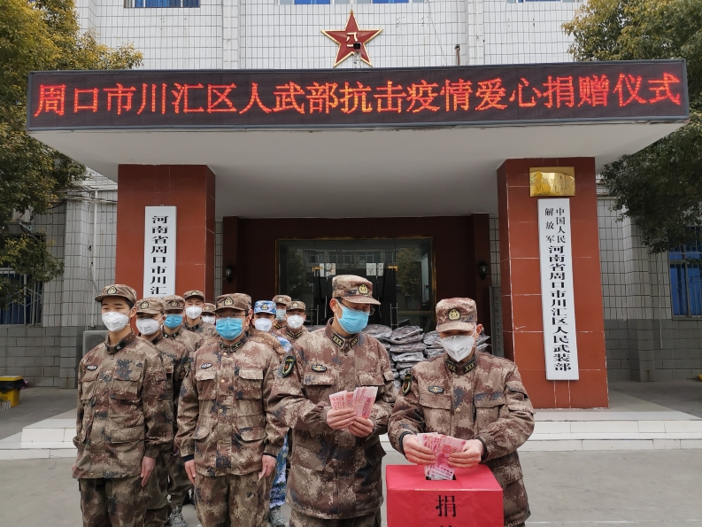 “疫情防控 匹夫有責”、“軍民同心 戰(zhàn)疫必勝”懸掛在川匯區(qū)人武部大門口的這兩幅標語格外醒目,喊破嗓子不如干出樣子,他們這樣說的,更是這樣干的。2月6日下午,在部長陳繼芳、政委高新傳的號召下,干部職工們共捐款4135元,還將購買到的141件07式荒漠軍用迷彩大衣送到防疫一線執(zhí)勤點,用實際行動詮釋了軍民一心共同“戰(zhàn)疫”的決心和信心。
