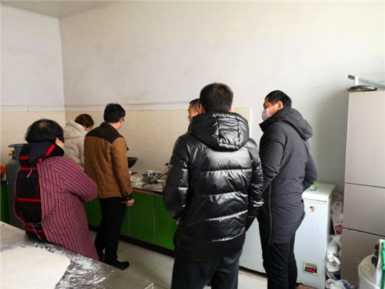 疫情越來越嚴重,鄉(xiāng)干部全部下沉到行政村,搞宣傳、設卡點、控人流。因為早出晚歸無暇在家就餐,加上飯店閉店,鄉(xiāng)政府伙房每餐都就餐人數(shù)從平時一二十人激增到五六十人。買不到饅頭吳素霞就親手蒸,買不到面條她就親手搟。特別是午間各村卡點人員交接時間不一,送走一波人又來一波。剛洗刷完餐具、清掃好廚房又該準備下一餐了。