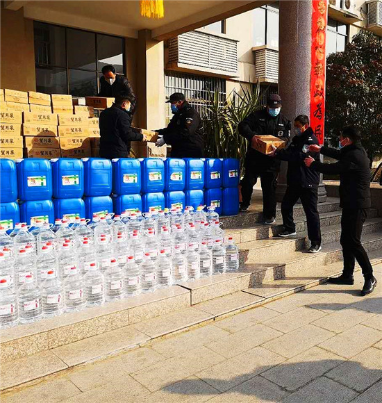 2月9日,一輛掛著“華德保安集團(tuán)捐贈(zèng)醫(yī)用物資助力鹿邑縣公安局疫情防控”載著滿滿醫(yī)用物資的貨車,從門口趕來(lái)停在鹿邑縣公安局大院里。