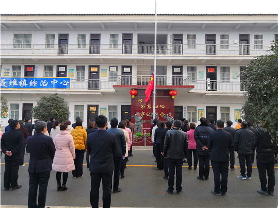 按照疫情防控復(fù)產(chǎn)復(fù)工工作安排,2月24日為恢復(fù)上班的第一天。8時(shí)許,西華縣聶堆鎮(zhèn)政府全體干部衣冠莊重、佩戴口罩、按照間隔1.5米的距離整齊地站在國旗臺(tái)前共同舉行隆重的升國旗儀式,以一種不一樣的方式打開新的工作局面。