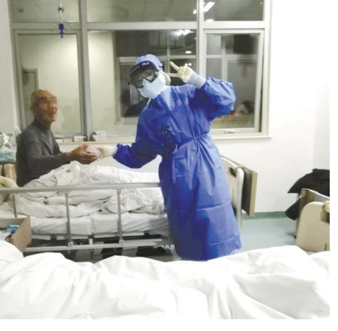“這是我們應(yīng)該做的工作。您辛苦了,一定要加油哦?!弊鐾隀z測(cè)、量完體溫,胡奔奔將9號(hào)床患者的手輕輕放進(jìn)被子,并為他掖了掖被角。