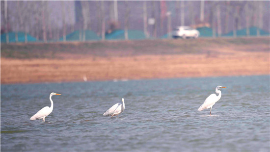 3月5日是驚蟄,俗語有“春雷驚百蟲”,從這一天開始,陽氣上升、氣溫回暖、春雷乍動、雨水增多,萬物生機盎然。驚蟄,自古以來是我國春耕開始的節(jié)令,冬眠的動物蘇醒,動物們也開始活躍起來。圖為3月4日我市引黃調蓄工程的兩千多畝湖泊里,水鳥翔集,喜歡水清的白鷺也出現(xiàn)在這里。記者 梁照曾 攝