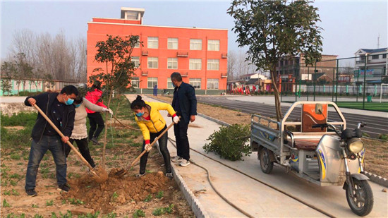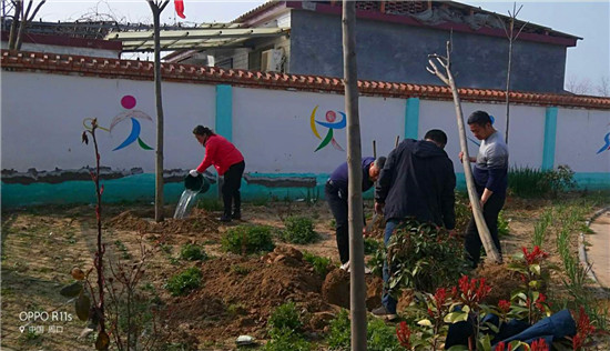 蔣莊小學(xué)地處革命老區(qū)西華縣城邊沿,是一所新建學(xué)校,植樹(shù)空間很大。每年植樹(shù)節(jié),該校都要組織師生栽樹(shù),開(kāi)展“植樹(shù)造林、綠化校園”活動(dòng),學(xué)校植樹(shù)多、環(huán)境優(yōu)美,已經(jīng)被西華縣命名為“綠化達(dá)標(biāo)校園”。今年植樹(shù)遭遇了意想不到的新冠肺炎疫情,組織學(xué)生植樹(shù)危險(xiǎn)性極大。為保證師生身體健康和生命安全,該校組織老師分期、分批、分片,戴著口罩單獨(dú)作業(yè)、單獨(dú)植樹(shù),防止病毒交叉感染。