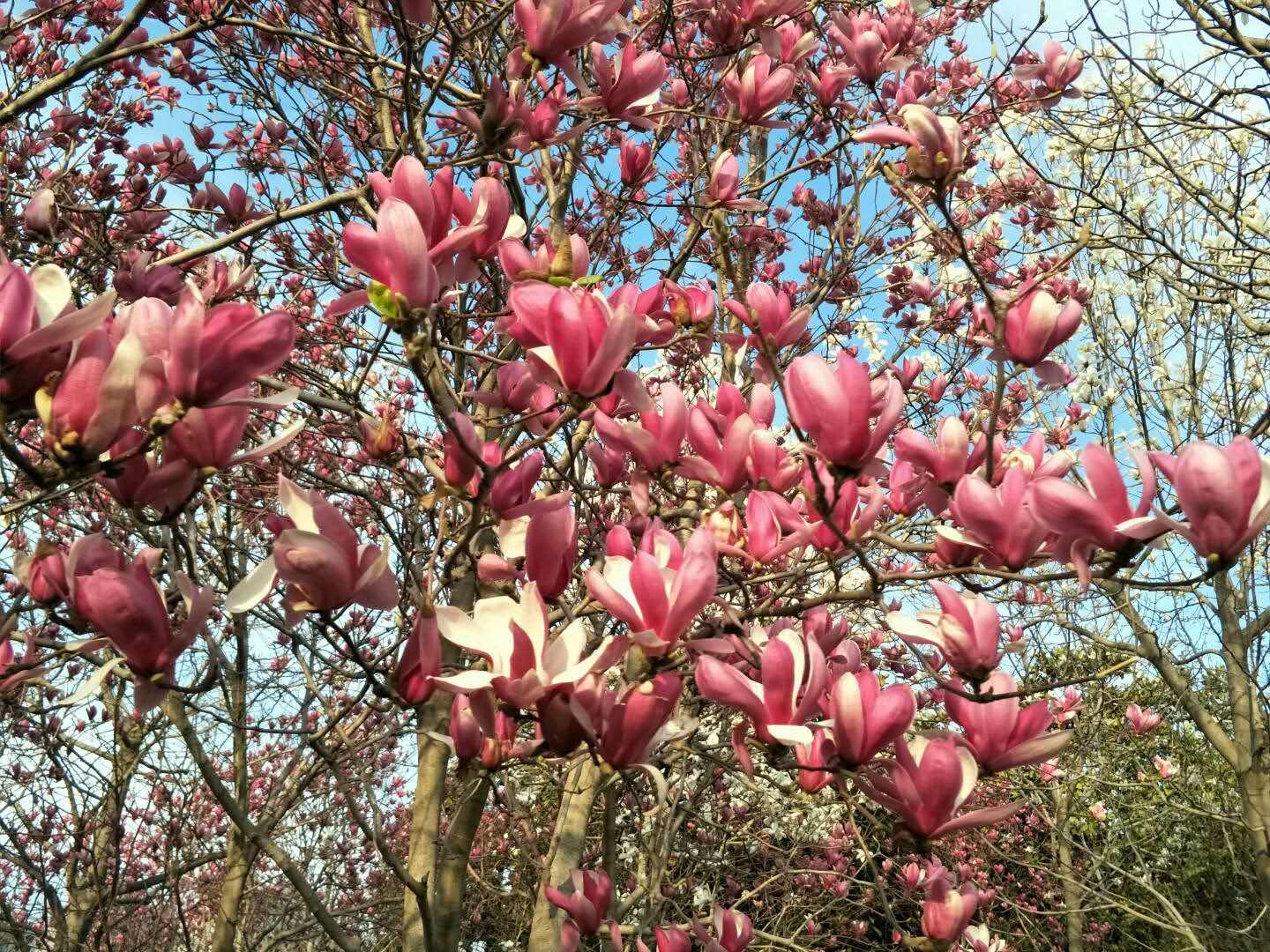 紫葉李、連翹、辛夷花、海棠花、丁香花、棣棠、桃花……都熱熱鬧鬧地開(kāi)著。