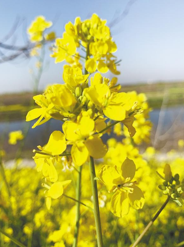 進(jìn)入油菜開花時節(jié),田野間一片金黃。油菜花競相怒放,千姿百態(tài),花團(tuán)錦簇,放眼望去,花海十分壯觀,大地都像披著一塊金黃的地毯。花粉中含有豐富的花蜜,引來彩蝶與蜜蜂飛舞,美麗風(fēng)景讓人流連。