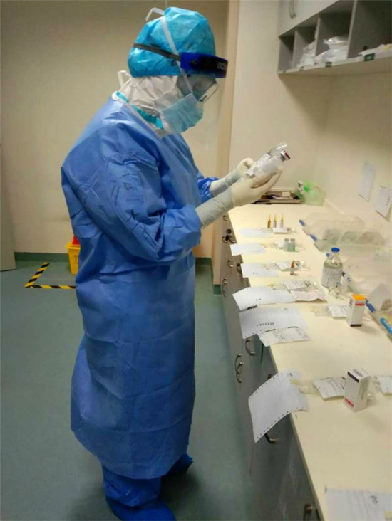 周口市中心醫(yī)院心血管內(nèi)科三病區(qū)護(hù)士孫慧慧是周口援鄂醫(yī)療隊(duì)第一個(gè)上“治療+辦公班”的護(hù)士。“可能新疆隊(duì)的老師知道我們兩家醫(yī)院使用的是同一個(gè)數(shù)字化醫(yī)療處理系統(tǒng),我又經(jīng)常上辦公班的緣故吧。”孫慧慧說(shuō),“簡(jiǎn)單來(lái)說(shuō),辦公班負(fù)責(zé)處理醫(yī)囑,治療班負(fù)責(zé)配兌藥物。在這里,一個(gè)人要擔(dān)負(fù)起這兩個(gè)職能?!?/p>