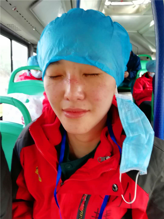 四個(gè)小時(shí)很快就在緊張忙碌中過(guò)去了。接班的新疆醫(yī)療隊(duì)護(hù)士來(lái)了,催促孫慧慧趕緊下班。在密閉的環(huán)境,穿著密不透風(fēng)的防護(hù)服工作,時(shí)間長(zhǎng)了會(huì)胸悶缺氧,“她就一直催我下班”。