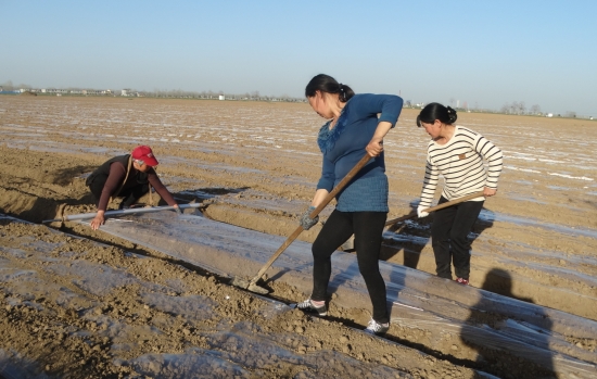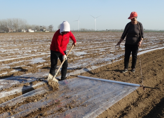 3月24日,沈丘縣周營鎮(zhèn)歐營村生態(tài)中藥材種植基地,當?shù)亍八庌r”們正為新種植的白術,覆蓋農膜增溫保墑。