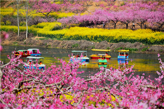 今年是黃橋迎來(lái)第十六屆桃花節(jié),鑒于疫情防控的需要,本屆桃花節(jié)不再聚眾舉辦,然而,燦爛如錦的黃橋,還是吸引著大批人們前來(lái)踏青賞花。3月24日,仲春的太陽(yáng)火辣辣的,依然阻止不了人們前來(lái)觀賞桃花的好心情,游人如織,攜家?guī)Э?,呼朋引伴,漫游在桃花深處,桃花飛紅的潁河里,大人帶著孩子們踏著游船,暢游花海碧水之間,游船點(diǎn)點(diǎn),讓人嘆為觀止。