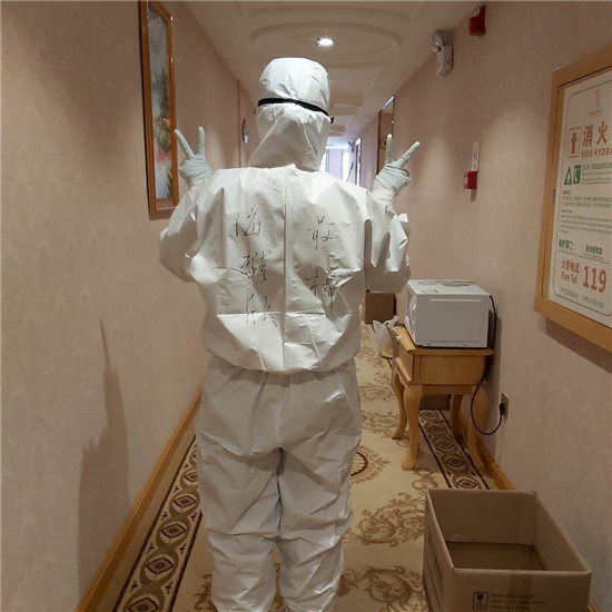 “我是護士,現(xiàn)在武漢正是最需要醫(yī)護人員,我要去武漢盡一份力量?!痹谡f服了家人與醫(yī)院領(lǐng)導(dǎo)后,2月17日 海雅欣與北京、海南等地6名志愿者在湖北大悟縣服務(wù)區(qū)聚合,2月18日到武漢東湖高新區(qū) 濱湖社區(qū)衛(wèi)生服務(wù)中心佳園路如家隔離酒店進行志愿者服務(wù)。先后參與了東湖高新區(qū)隔離點病人生命體征測量并照 顧病人日常生活需要;濱湖社區(qū)衛(wèi)生服務(wù)中心所屬病人咽拭子核酸檢測采樣;湖北省人民醫(yī)院東院區(qū)發(fā)熱門診患者 信息登記、分流疏導(dǎo)、聯(lián)系病人所屬社區(qū)安排隔離;東湖高新區(qū)發(fā)熱門診閉關(guān)等工作。