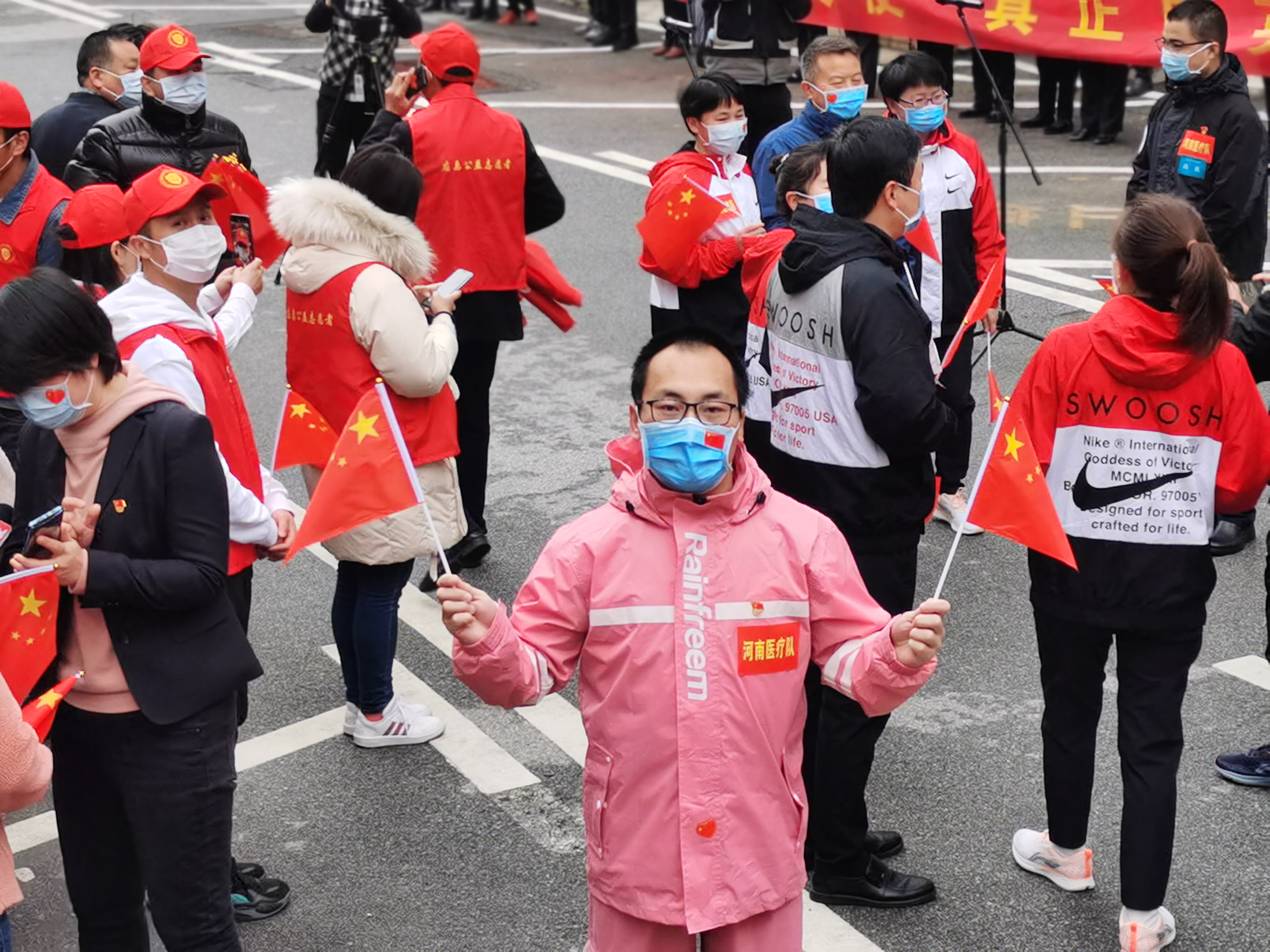 3月30日上午,在完成各自使命之后,按照河南省援鄂醫(yī)療隊(duì)統(tǒng)一安排起程凱旋。湖北街頭萬人空巷送英雄,街頭車輛長(zhǎng)鳴笛,沿街循環(huán)播放紅歌《歌唱祖國(guó)》,勝利的歌聲激蕩勝利的心情。