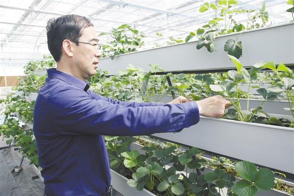3月31日,在項城市丁集鎮(zhèn)綠色基地里,村民杜長虹正在管理草莓。這里的草莓全部采用高架立體模式栽培,最大限度利用了空間,便于集約化管理,促進了農(nóng)業(yè)增效、農(nóng)民增收。