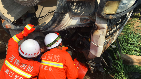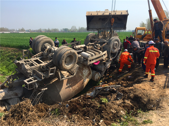 4月7日9時(shí)許,沈丘縣李老鄉(xiāng)劉堂村附近一輛攪拌車翻入溝內(nèi),司機(jī)人被困。接到報(bào)警后,沈丘縣消防救援大隊(duì)立即出動前往救援。