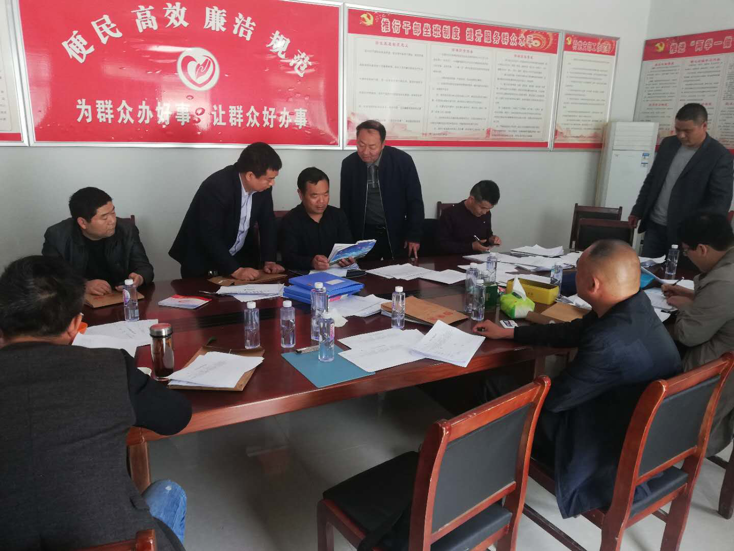 驗收組圍繞“兩不愁三保障”、“五好”、“五達標”等樣本村創(chuàng)建工作,認真查看了安莊村扶貧工作檔案,并對脫貧責任組組長、第一書記、村兩委和幫扶責任人進行訪談。